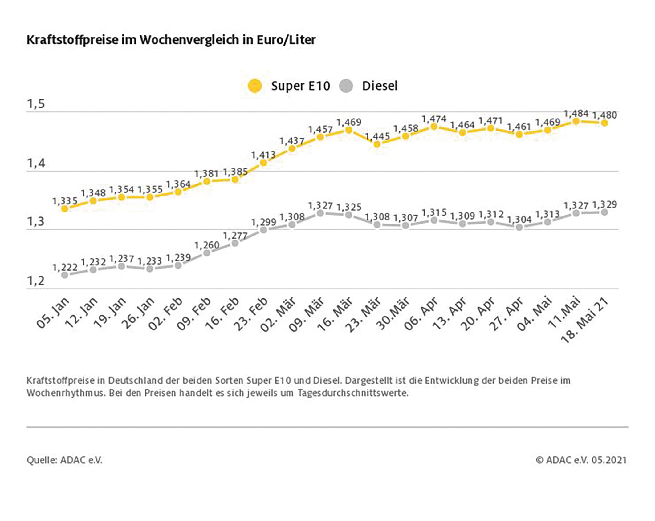 München (ots) – Super E10 ist wieder ein wenig günstiger: Nach einer aktuellen ADAC Auswertung der Kraftstoffpreise in Deutschland zahlt man für einen Liter im bundesweiten Durchschnitt 1,480 Euro und damit um 0,4 Cent weniger als in der Vorwoche. Für Dieselfahrer ist eine Tankfüllung diese Woche dagegen geringfügig teurer. Ein Liter Diesel kostet aktuell 1,329 Euro und damit rund 0,2 Cent mehr als vor einer Woche.