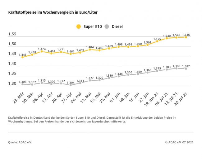 München (ots) Um mehr als sechs US-Dollar ist der Preis für ein Barrel Rohöl der Sorte Brent seit vergangener Woche abgesackt, doch an den Tankstellen ist dieser deutliche Rückgang bislang nicht angekommen. Wie die wöchentliche ADAC Auswertung der Kraftstoffpreise in Deutschland zeigt, kostet ein Liter Super E10 derzeit im bundesweiten Mittel 1,546 Euro und damit 0,1…