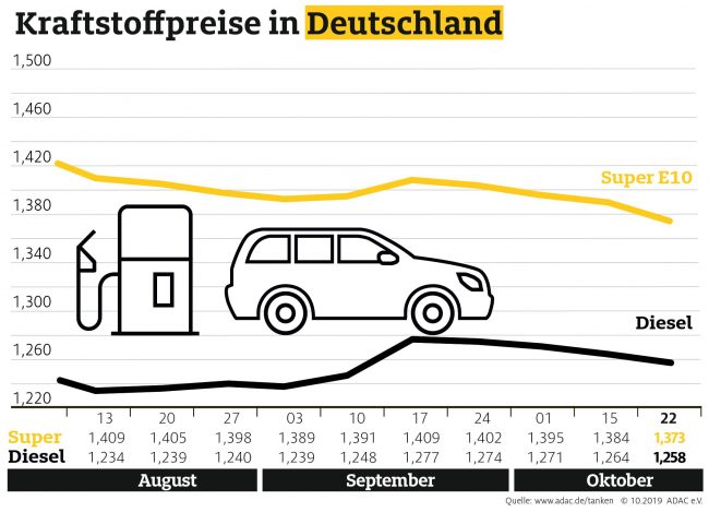 München (ots) Nachdem die Durchschnittspreise für Benzin und Diesel zuletzt fünf Wochen in Folge gesunken sind, wird Tanken in Deutschland wieder teurer. Laut aktueller Auswertung des ADAC kostet ein Liter Super E10 im Bundesmittel derzeit 1,379 Euro, das sind 0,6 Cent mehr als in der Vorwoche. Diesel verteuerte sich um 0,5 Cent auf durchschnittlich 1,263 Euro…