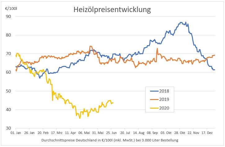 Auch wenn die Corona-Pandemie noch nicht beendet ist, zeigt sich am langfristigen und kurzfristigen Preisvergleich doch, dass der Preissturz vom Frühjahr vorbei ist. Seit Mai klettern die Preise langsam aber stetig wieder etwas in die Höhe. Verglichen mit den Vorjahren bleibt Heizöl aber nach wie vor unschlagbar günstig.