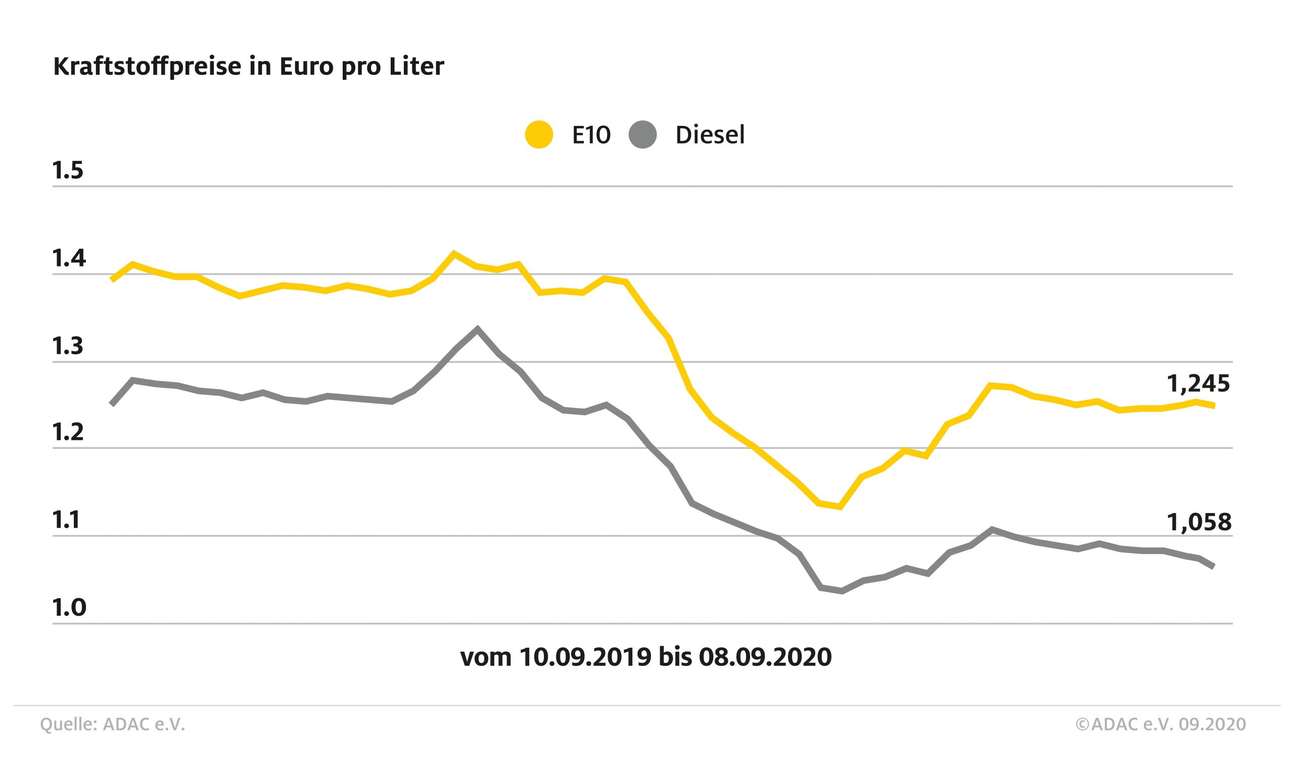 München (ots) – Die Kraftstoffpreise sind im Wochenvergleich zurückgegangen. Für Super E10 verzeichnet der ADAC einen Rückgang von 0,9 Cent. Ein Liter kostet im Bundesschnitt 1,245 Euro. Beim Diesel ist ein noch stärkerer Preisrückgang zu verzeichnen. Hier sinkt der Preis für einen Liter um 1,4 Cent auf 1,058 Euro.