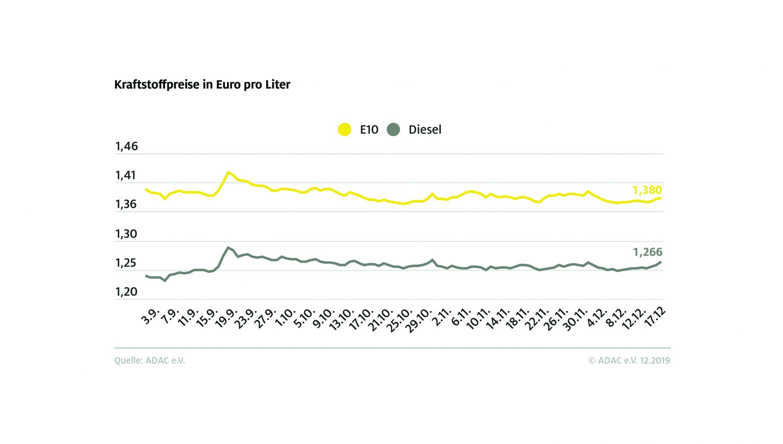 Nach Wochen eher sinkender Preise müssen Autofahrer beim Tanken wieder tiefer in die Tasche greifen. Laut aktueller Auswertung des ADAC kostet ein Liter Super E10 im Bundesmittel derzeit 1,380 Euro, das sind 0,5 Cent mehr als in der Vorwoche. Diesel verteuerte sich sogar um 1,2 Cent auf durchschnittlich 1,266 Euro je Liter.